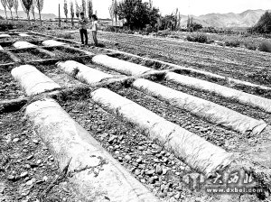 在约一分地的试验场上,从原始土地,到纯铺砾石的砂田、纯铺垄膜的田、砾石与垄膜同铺的田、铺砾石不铺垄膜的田及铺垄膜不铺砾石的田等,依次排开,反映压砂田与垄膜覆盖各种结合下的植被生长、雨水集流、保墒等情况。