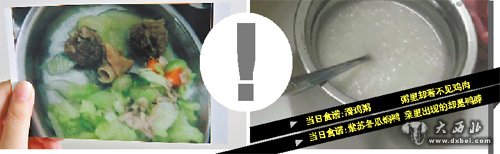 有家长将照片打印了出来,“看了我就揪心。”指着一沓照片,家长说,孩子的早餐由今年5月以前的两个点心一个汤改成了一个点心一个汤,原来供应的鸡蛋或鹌鹑蛋不见了;粥里不但没有瘦肉,还稀得可以当镜子照;吃的鸭肉不见了,取而代之的竟然是鸭脖……