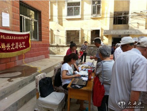 大西北网讯 8月5日一大早,在嘉峪关路街道嘉峪关北路社区门前老人们已排起了长队在等待领取“兰州市民卡”。上午7时30分“兰州市民卡”发放工作正式开始,嘉峪关路街道6个社区的助老员配合虚拟养老院和兰州市数字城市建设办公室工作人员有条不紊的为辖区老人发卡,并耐心的为老人讲解新卡的使用方法。为避免酷暑高温下老人等待时间过长,发卡工作于5日—6日的上午11:00之前完成。据悉,“兰州市民卡”发放工作明天还要继续进行,505张“兰州市民卡”将全部发放到老人手中。