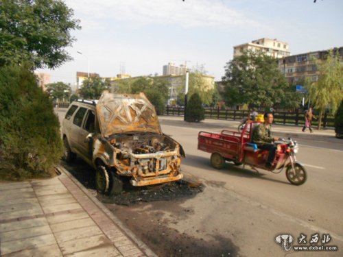 昨日上午,记者途经南滨河路雁滩家具市场公交站附近的马路上看到,一辆自燃的报废车“睡”在马路一侧。这辆自燃的报废车车体呈银白色,车头被烧得面目全非,车窗被烤裂,轮胎被烤爆。附近居民说,自燃的报废车“睡”在马路上有好几天了,既妨碍交通,又影响市容,希望有关部门能够尽快将报废车辆处理。