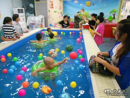 在水池中戏耍的小孩