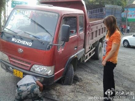 大西北网讯   8月19日8时许,兰州晏家坪路上一个窨井掉入一辆微行货车,司机正用千斤顶顶车,一分种前一辆面包车刚从井内爬出,这条路是外地车辆进入兰州的南通道。