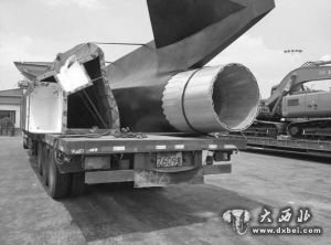 事实上,这车上的飞机,只是模型,它是从四川成都运往余姚一个爱国军事基地作展览的。但飞机模型,的确是按照网上的图片,根据J-20隐形战斗机1∶1的尺寸打造,并找了相近的颜色喷涂而成,“但它里面是空的,也就是个空壳子。”