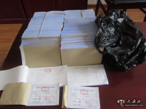 为了确保抓捕工作万无一失,做到人赃俱获,根据掌握的信息,民警分批进入公交站点,在交易地附近进行架网布控。几分钟之后,在广场西南角,民警发现一手塑造袋的男青年形迹可疑,就在这名男子准备乘公交车离开时,民警立即上前对其进行询问,并从其随身携带的黑色塑料袋内查获印有“甘肃省国家税务局通用手工发票”(千字开头)、“甘肃省住宿业统一发票”(万字开头)共计128本、“甘肃省非税收入定额票据(面值贰元)”2本。