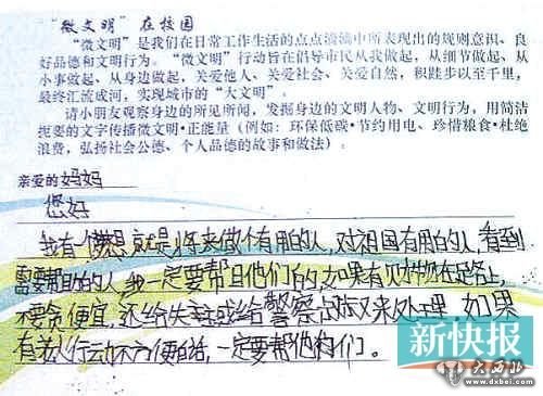 “我有一个梦想,就是将来做个有用的人,对祖国有用的人,看到需要帮助的人,我一定要帮助他们。如果有财物在路上,不要贪(小)便宜,还给失主,或给警察叔叔来处理,如果有老人行动不方便的话,一定要帮他们。”这是小乐的最后一份暑期作业,学校发下一张“‘微文明’在校园”的明信片,要求学生用简洁扼要的文字传播文明,传递正能量。小乐用仍然稚嫩的笔迹写下以上一段话。正是小乐暑假作业上的这段话,让她的父母作了捐献小乐器官的决定。