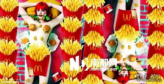 在这些照片中,20岁的斯蒂芬妮·基全裸出镜,用诸如章鱼、寿司或者汉堡等元素遮盖敏感部位。还有照片显示她一头红发,上身赤裸,口含樱桃,戴着红色手套,挥舞一把红色的手枪。