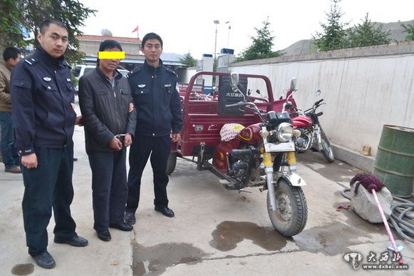 今年5月8日上午9时许,武胜驿派出所民警接到群众举报称:一男子驾驶一辆三轮摩托车由武胜驿镇富强堡村沿312国道向武胜驿村方向行驶,三轮摩托车可能系被盗车辆。接到举报后,所领导立即带领民警赶至武胜驿村大川口设卡查控。经工作,盘查民警在设卡点附近成功发现该名男子。经现场盘问检查,盘查民警发现该男子言辞闪烁,其所驾驶的三轮摩托车油箱处有明显撬痕。盘查民警遂将该名男子抓获。