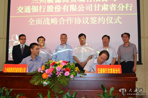 大西北网8月27日讯 (记者 张小燕) 8月27日上午,兰州毅德商贸城有限公司与交通银行甘肃省分行战略合作签约仪式在交行大厦隆重举行。榆中县县委书记甘培岳、榆中县县长王林、榆中县记委书记、副县长韩悌勇参加签约仪式。仪式上,交通银行甘肃省分行行长胥小彪与兰州毅德商贸城有限公司总经理吉洋交换签约文本,成功签约,达成战略合作伙伴关系。