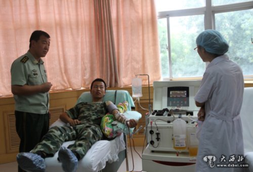 因患者血型特殊,经过化验后,只有特勤中队裴国强一人与病人血型要求相符,医生遂立即采血分离血小板。