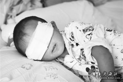 2013年8月29日,山西省眼科医院病房,斌斌躺在病床上,当时他还不知道自己已经失去了双眼。新京报记者 侯少卿 摄