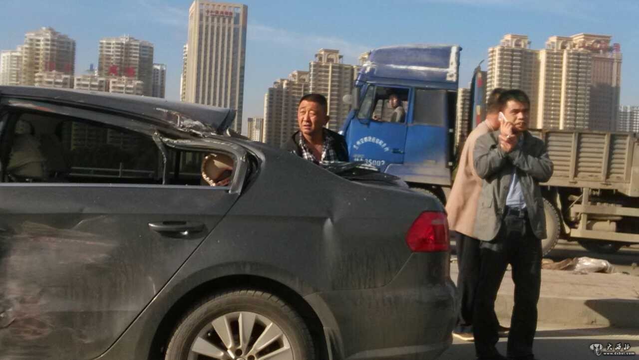 大西北网快讯 9月9下午5点30左右,在七里河天奇物流园门前,一辆重型卡车与一辆轿车相撞,轿车严重变形,所幸没有造成人员伤亡。(记者王璐)