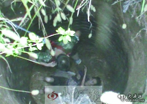 女子坠井地点在与小李庄相邻的中峰村,记者看到,这是一口田间废井,被茂盛的玉米秸秆包围,很难被人发现。此井是一口土井,没有一点水,井口直径约1米,深约4米,井壁光滑,难以攀爬。