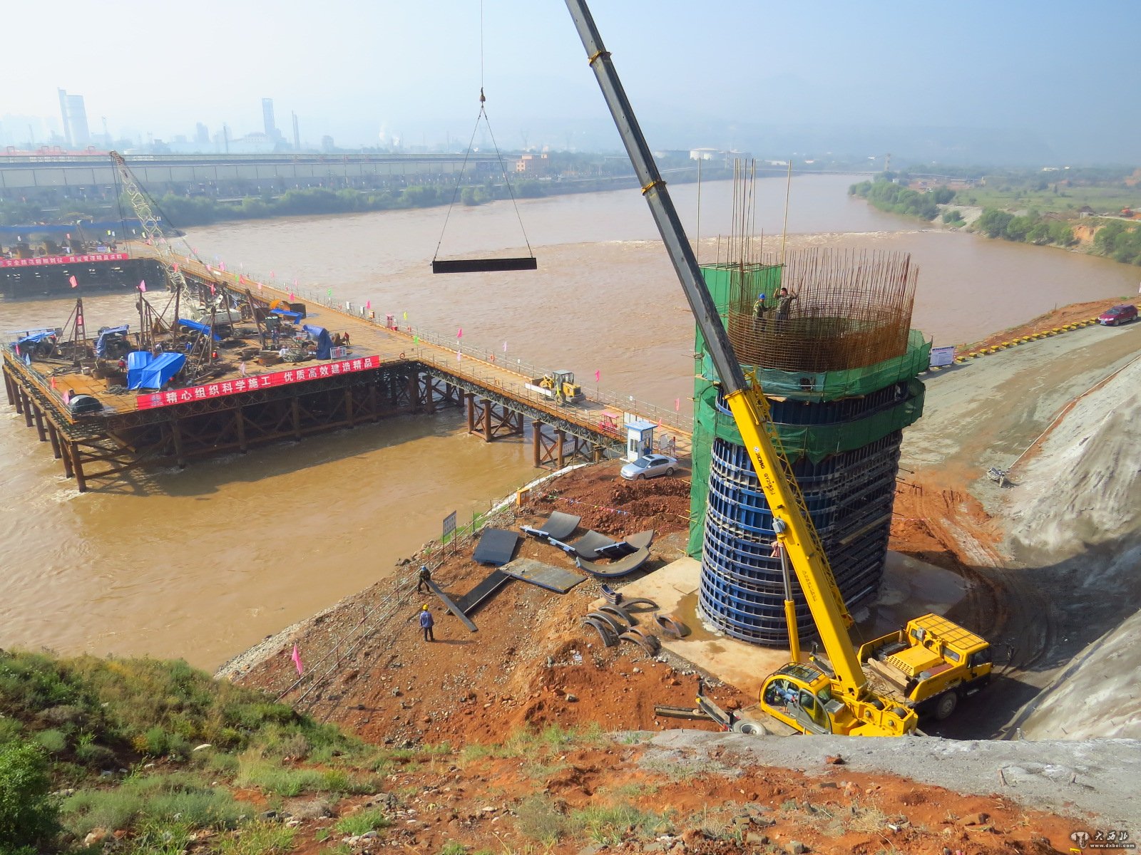 新闻之二:兰州--中川铁路西固黄河特大桥浇桩现场 大西北网9月21日刊发