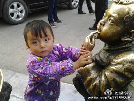 大西北网10月9日讯    10月8日18时许,兰州西关十子一个小男孩站在人行道雕像旁,用纳闷的眼光看着领他的妈妈,似乎在问哥哥为啥不说话?