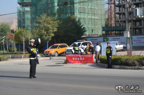 大西北网讯 昨日,兰州市公安局交警支队红古大队联合区环保局、区工信局以及海石湾镇政府在海石湾城区东口开展“2013-2014年冬季大气污染防治”活动。