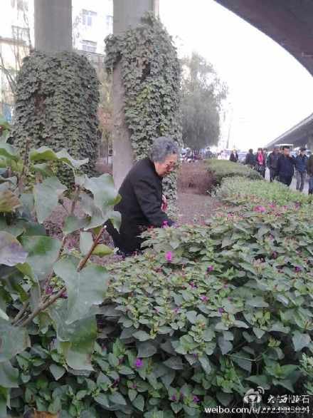 大西北网10月22日讯   10月22日9时许,兰州马家坡天桥下一位老人正在摘花蕾。