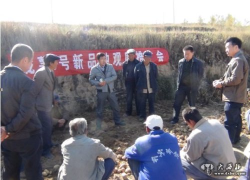 市种子局王生明副局长对该品种的种植潜力和发展前景进行分析。他说,“陇薯7号”薯块休眠期长,耐储藏。薯块干物质含量26%,淀粉含量19.68%,还原糖含量0.17%,粗蛋白含量2.37%,维生素C含量25.2mg∕100g。植株高,抗疫病。适宜在榆中北山的高寒、二阴、旱地种植。一般亩产2000-3000kg,较传统老品种每亩增产600kg以上,每亩增加收入1100元以上。该产品深受南方消费市场欢迎,发展前景十分看好。而高产、肉黄、价优的特点引起村民的浓厚兴趣,这也为明年该村脱贫致富找到一条新路子。