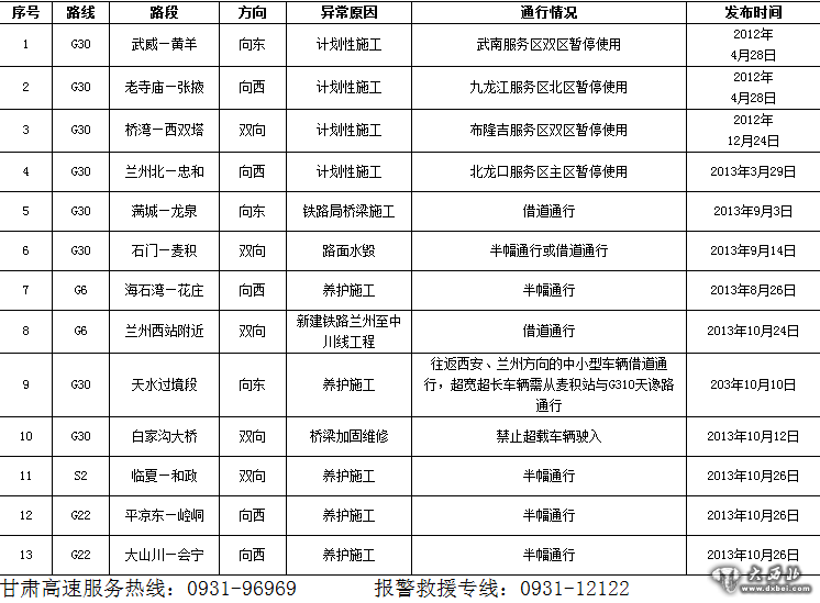 大西北网10月26日讯 目前我省高速公路天气晴或多云。另外,我省部分路段正在进行施工,请途经施工路段的车友控制好车速,切勿超车和随意停车。由此给您带来的不便敬请谅解!