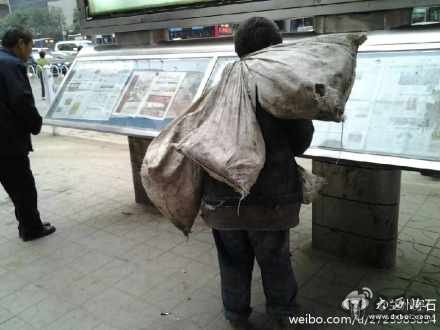 大西北网讯 10月30日8时许,兰州西津东路人行道报栏前,一名拾荒人在看报。 (责任编辑:鑫报)