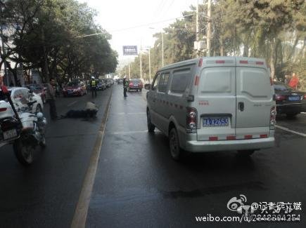 大西北网11月4日讯 近日,城关交警三中队接到一起报案在赶至现场发现,一名妇女被面包车撞到在地,事故原因是由于这名行人横穿马路,车速较快将其撞倒在地,幸运的是肇事者没有生命危险。交警提示:提高自身的安全意识,过马路时一定要走斑马线或者天桥、地下通道,确保自身的安全! (责任编辑:鑫报)