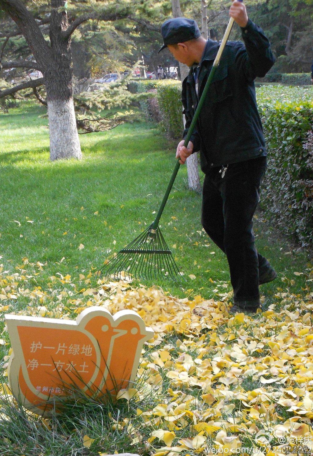 大西北网11月5日讯   今天下午,在兰州市民广场,一位环卫工人正在清扫树下的落叶,秋风乍起,为人们带来了深秋的问候。 (责任编辑:鑫报)