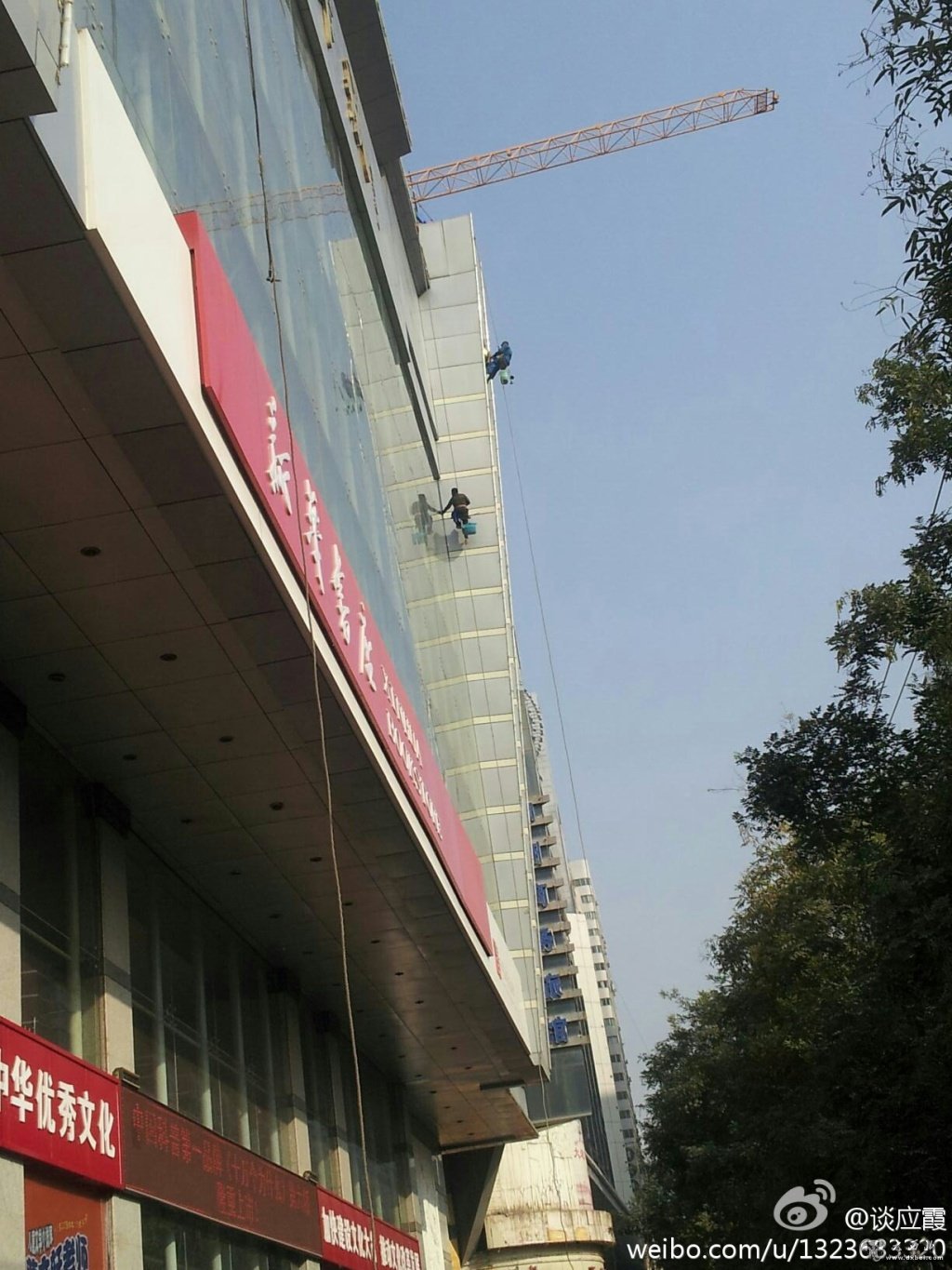 大西北网11月6日讯 这是大西北网记者今日拍摄的正在清洗新华书店楼面的“蜘蛛侠”。 (责任编辑:鑫报)