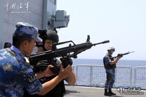 8月24日至25日,中国海军和美海军第五舰队在亚丁湾举行联合反海盗演习,中国“哈尔滨”号导弹驱逐舰、“微山湖”号综合补给舰及美军“梅森”号导弹驱逐舰参与其中。两军参演人员演练了轻武器射击、主炮对海射击、联合临检拿捕、联合武力营救等一系列科目,两军直升机更互降对方军舰,开创“重要里程碑”。
