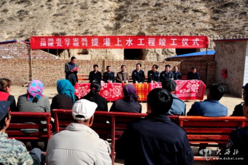 大西北网讯 经过3个多月的紧张施工,由兰州市公安局捐建的榆中金崖镇瓦子岘村提灌上水工程顺利竣工并投入使用。近日,竣工仪式在瓦子岘村举行,市公安局党委委员、政治部主任田俊锋,市公安局政治部、警务保障处、强制隔离戒毒所、机动车检测站等部门领导参加仪式。