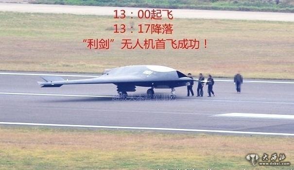 13年11月21日下午,网络上出现了国产隐身无人作战攻击机的首飞照片。据悉,这款国产 “利剑”无人作战攻击机由中航工业沈阳飞机设计研究所设计,中航工业洪都公司制造。目击者称,该机于21日下午13:00起飞,13:17分左右顺利降落,整个首飞历时近20分钟。(来源:超大军事 (责任编辑:鑫报)
