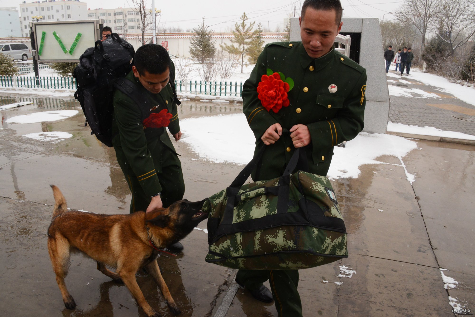 “‘菲菲’我要退伍了,这是我最后一次给你喂饭!天气变冷了,你腿上的伤刚好,以后可再不要太贪玩了!来,今天给你多吃点…”。搜救犬训导员张鹏军抹去眼角的泪水,轻轻的抚摸着他的爱犬“菲菲”。一向活泼好动的菲菲仿佛读懂主人的心情,此刻却乖巧无比,湿润的眼睛里也流出了泪水。