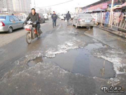 大西北网讯 家住张苏滩附近的居民外出路过张苏滩水产市场时,却总是一副愁眉苦脸的样子。因为这几天气温骤降,张苏滩水产市场段的马路变成了“溜冰场”,总是担心摔跤。