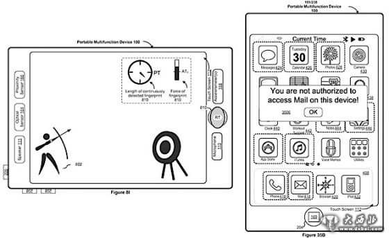 该专利称,Home键的功能将与黑莓Curve手机类似,可以利用指纹在按钮传感器上的“旋转”或“扭曲”来操纵手机。另外,该传感器还可以测量手指在Home键上停留的时间和压力,从而实现更多功能。
