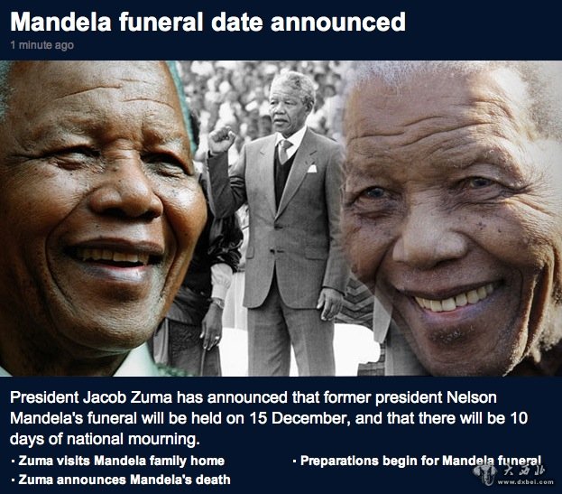 人民网12月6日电 据南非News24网站报道,南非前总统曼德拉的葬礼将于本月15日举行。