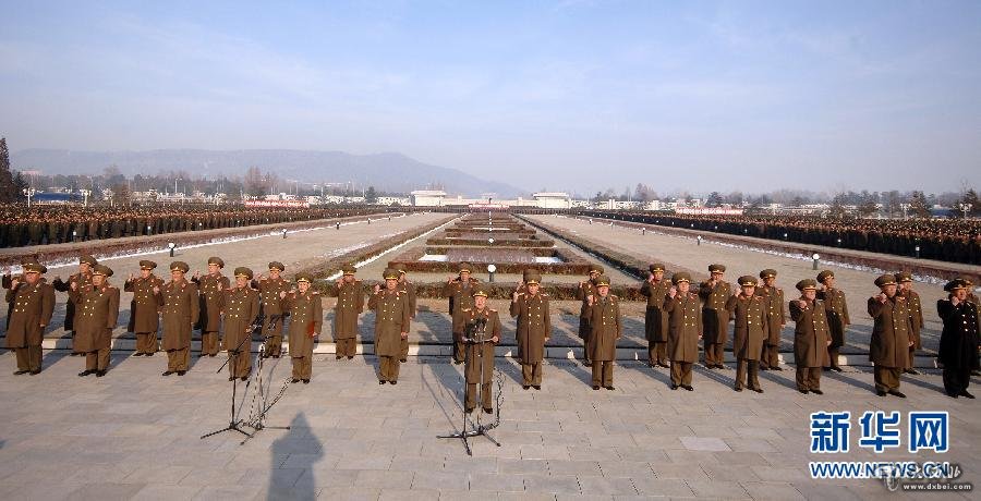 朝中社报道称,“朝鲜人民军的官兵们举行誓师大会,谨遵伟大领导人金正日大元帅的遗训,拥戴敬爱的最高司令官金正恩同志为统一团结和领导的唯一中心并誓死效忠”。