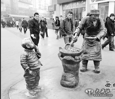 大西北网12月18日讯 据本网记者童微报道:12月15日,本报关于热冬果雕塑中的小男孩“消失”的报道引起关注。12月17日,消失了几天的西关热冬果雕塑中的小男孩回到原位。本报记者陈若梦摄