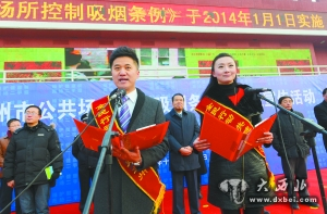 大西北网1月1日讯 据兰州晨报报道 2013年12月31日,省城举行《兰州市公共场所控制吸烟条例》生效启动仪式,宣告从今日起公共场所控烟将正式排上全市各级政府、各有关部门和单位、各相关行业的工作日程。“防止烟草危害、维护生命健康”,自觉履行义务和责任,也将由此刻起走进每个家庭、每位市民的工作生活之中。