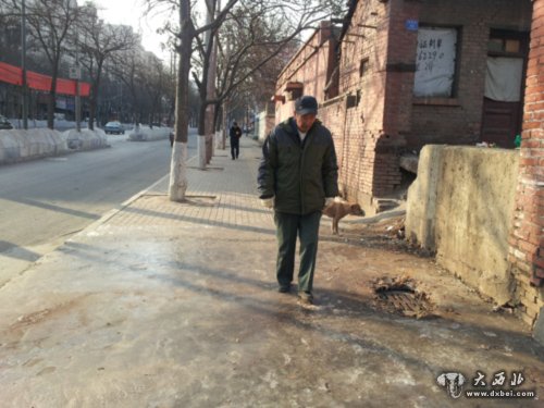 “真是太感谢你了。这下幸亏是你把我拉住了,单要是摔倒了,这冬天的地冻的实那就估计要伤筋动骨上了。”昨日清早,外出晨练的任旭泽老人在行走至武威路55号时差点被路上的坚冰滑倒,所幸被同路而行的王先生及时扶住。“上了岁数了,走路你就得看着点,这儿这么厚的冰,你就从自行车道上绕着走,万一摔坏了就受罪了。”王先生一边把老人往自行车道上扶一边说。记者发现,不仅该路段的人行道上结着厚厚的一层,就连旁侧自行车道上也绵延着十数米的冰层。