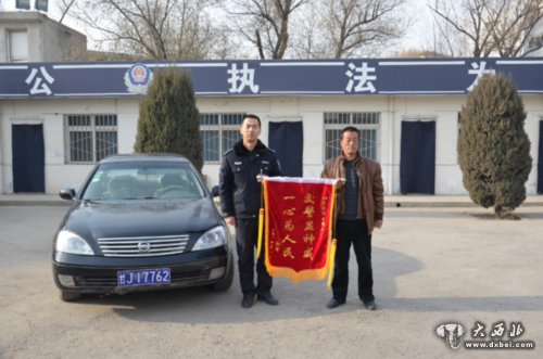 大西北网讯 1月13日上午,兰州市公安局交警支队龚家湾大队院里鞭炮齐鸣,被盗车车主苟红军送来一幅锦旗,感谢民警为其找回被盗小轿车。