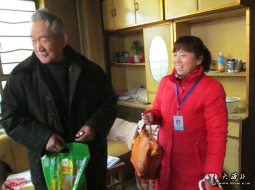 大西北网讯 随着新春佳节的临近,为帮助困难群众过上一个温暖幸福的春节。昨日下午,力行新村社区联合兰州市义务工作者分别看望、慰问了力行新村社区空巢老人陈秀英和另外几位老人,并为他们送去了大米和清油,还有大红福字等节前慰问品,这让老人们感动不已。