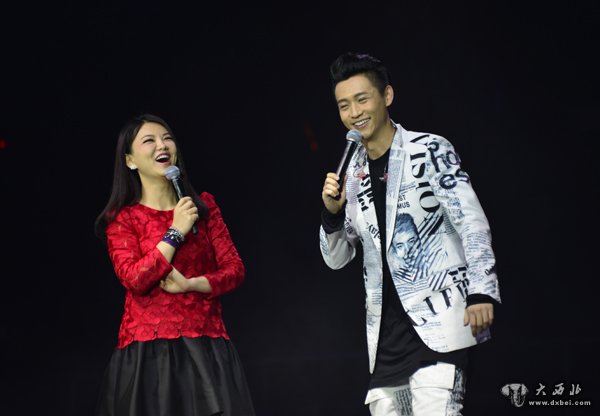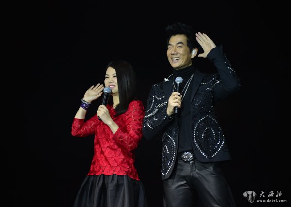 主持人李湘向观众介绍 台湾著名歌手任贤齐。 贾笑云 摄