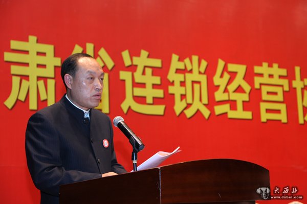 甘肃省连锁经营协会第一届理事会常务副会长杨贵元致词。 贾笑云 摄