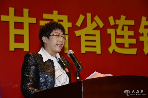 甘肃省连锁经营协会第一届理事会副会长岳淑莲致词。 贾笑云 摄