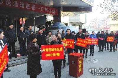 大西北网1月15日讯,据兰州晚报报道:14日上午,城关区举行2014年“献爱心、送温暖”慈善一日捐活动,共捐善款145.3万元,主要用于帮助困难群众度过一个温馨的春节。据悉,今年春节前后,该区将组织20余项慰问和扶贫济困活动,力争成为历年来“动员范围最广、筹措资金最多、投入规模最大、惠及人数最多”的一次慈善活动。