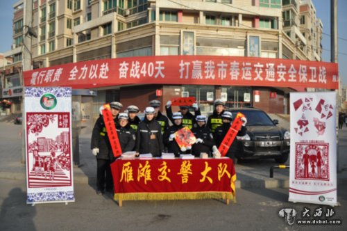 大西北网讯 1月16日为全国春运启动日,为积极响应兰州市支队开展春运交通安全宣传部署,保障雁滩春运期间道路交通安全畅通。当日,雁滩交警大队在辖区新港城十字开展“情满旅途,交警同行”为主题的春运启动仪式。