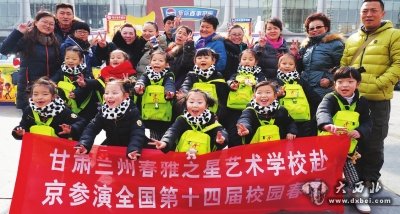 大西北网1月20日讯,据兰州晚报报道:1月19日下午,兰州春雅之星艺术学校的30名小朋友在老师和家长的带领下,先后前往北京参加第十四届全国少儿春晚大赛总决赛。