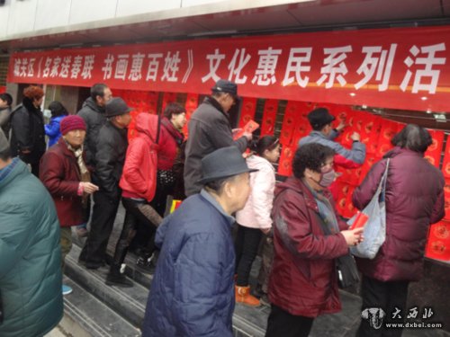 大西北网讯 为营造欢乐祥和喜庆的节日气氛,让广大居民群众切身感受中国传统文化气息,2014年1月27日下午2时开始,铁路新村社区与城关区文化馆联合举办了此次活动,来现场为居民书写春联,送上新春祝福。送春联活动以免费赠送的形式,为广大群众带去了马年新春的祝福。