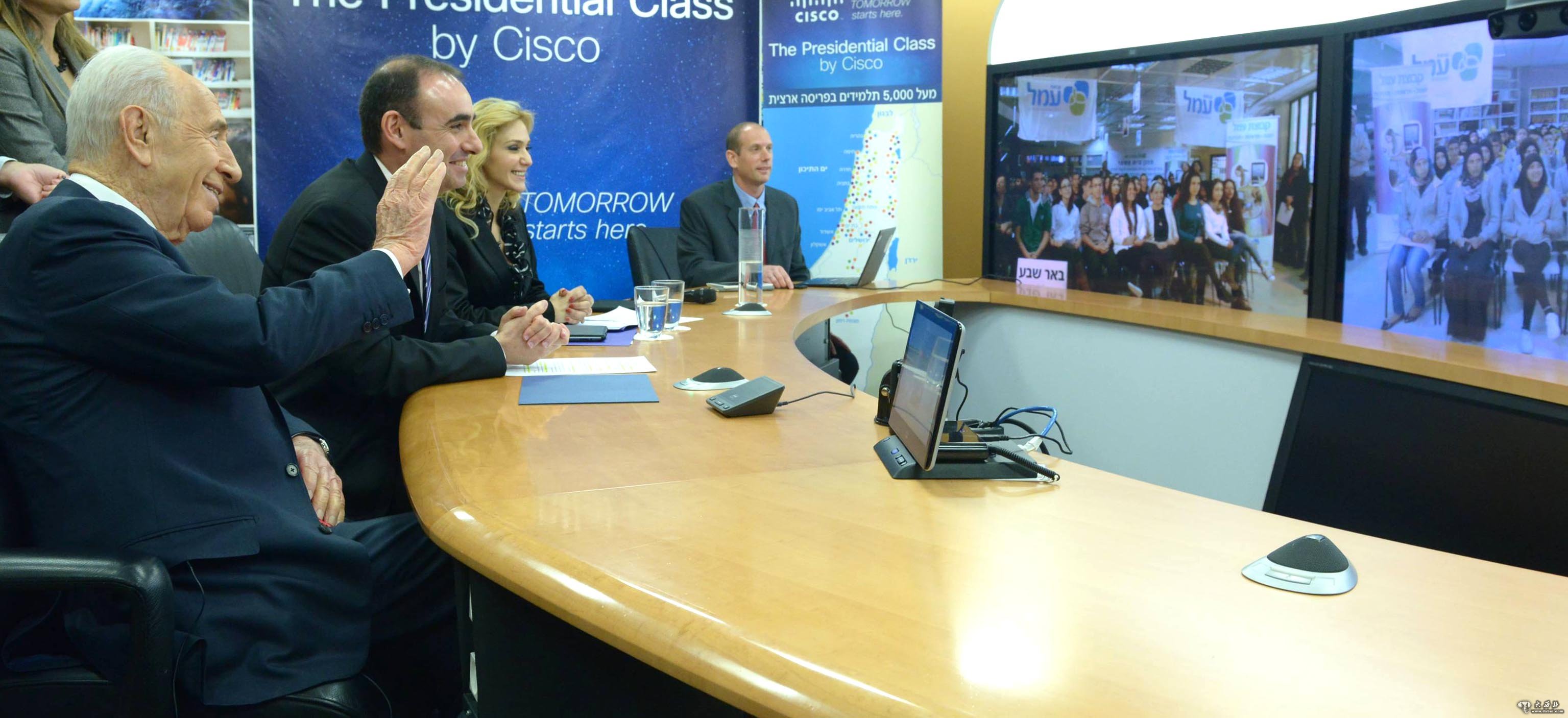 当日,以色列总统佩雷斯和超过9000名以色列高中生通过思科公司的远程呈现系统技术,共同打破最大在线公民课堂的吉尼斯世界纪录。超过8500学生观看了现场直播,部分学生还获得了向总统提问的机会。