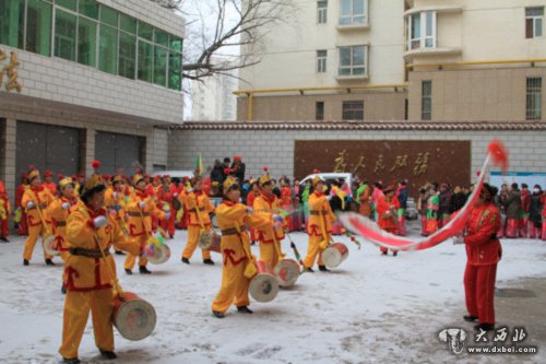 大西北网讯 喧天的锣鼓,欢快的秧歌,欢腾的舞狮子表演……日前,在盐场路街道,由盐场堡村社火队、上川村社火队、太平鼓队、腰鼓队组成的社火队,在辖区舞狮子、扭秧歌、打太平鼓,使整个盐场路街道沉浸在一片欢乐的氛围中,一场场别开生面的社火表演,为人们送去了马年的祝福。