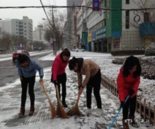 大西北网讯 昨日凌晨,又一场春雪悄然降临。降雪给人们带来惊喜的同时,也给人们出行带来了不便。昨日早上,雁南街道南河社区组织工作人员和志愿者清扫积雪,为行走在路上的人们带来了丝丝暖意。