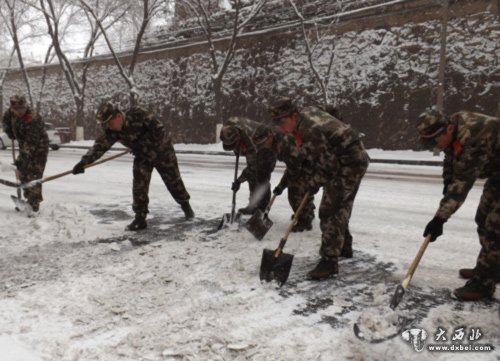 大西北网讯 2月16日,又一场春雪悄然降临。降雪给人们带来惊喜的同时,西固街道出现大面积结冰,行人、车辆通行困难,交通受阻。昨日早上,武警西固中队官兵清扫积雪,为行走在路上的人们带来了丝丝暖意。